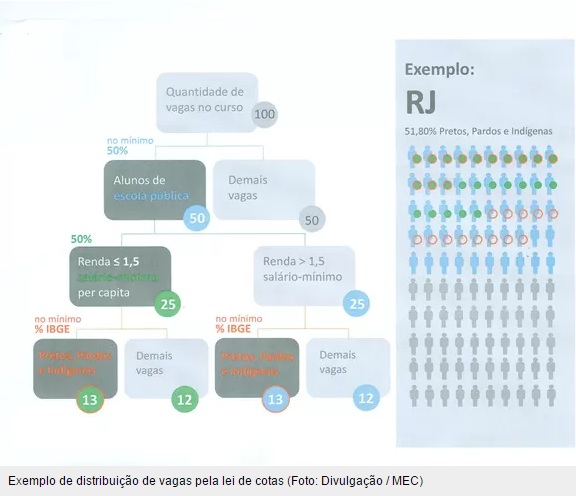 O MEC adotou em agosto de 2012 a política de cotas sociais e raciais no Sistema de Seleção Unificada (Sisu). Em 2013, as universidades federais e institutos tecnológicos destinaram 12,5% das vagas para alunos de escolas públicas e, dentro deste universo, um percentual para estudantes autodeclarados pretos, pardos ou indígenas. Em 2014, 25%. Em 2015, 37,5%. Em 2016, 50% das vagas serão para cotistas.